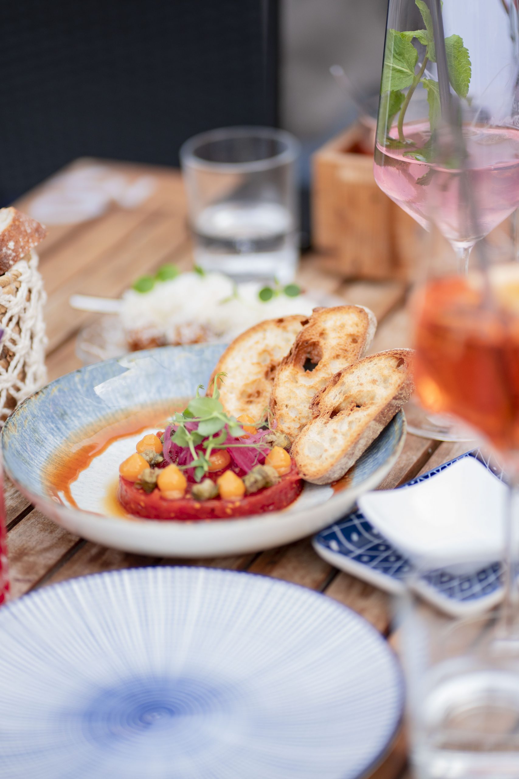 Bei uns dreht sich alles um Sharing, Genuss und gute Drinks. Freut euch auf eine Auswahl an mediterranen Tapas, Wein und Cocktails, die perfekt zu einem langen Abend mit Freunden passen.